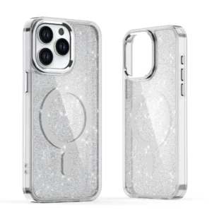 Glitter dėklas MagSafe iPhone 16 Pro Max – baltas su blizgučiais