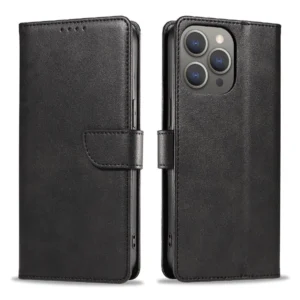 Leather Book dėklas iPhone 16 Pro Max – juodas