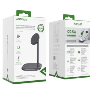 Acefast Qi wireless charger with power up to 15W for iPhone (with MagSafe) and Apple AirPods headphones – stand, stand, magnetic holder – gray (E6 gray)