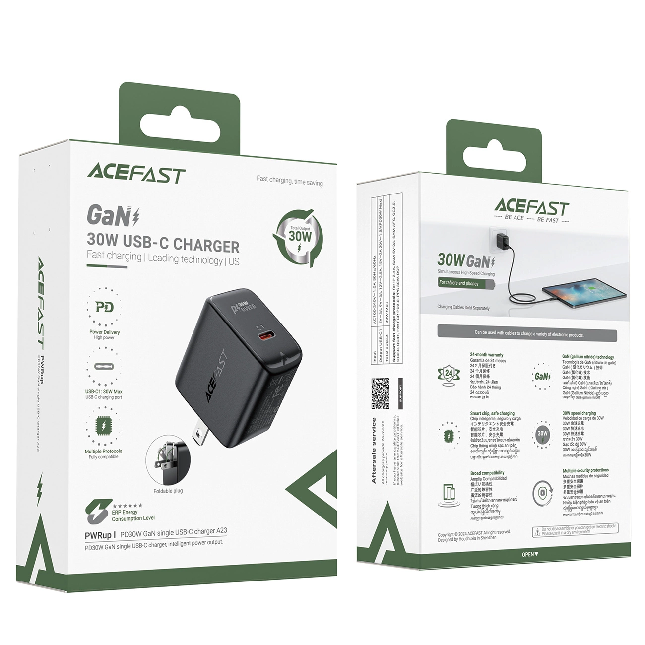 Acefast A23 30W GaN USB-C US Wall Charger – Black