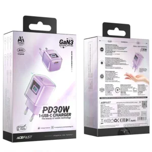 Acefast A53 charger with Power Delivery technology, USB-C connector, GaN technology, 30W, with display – purple