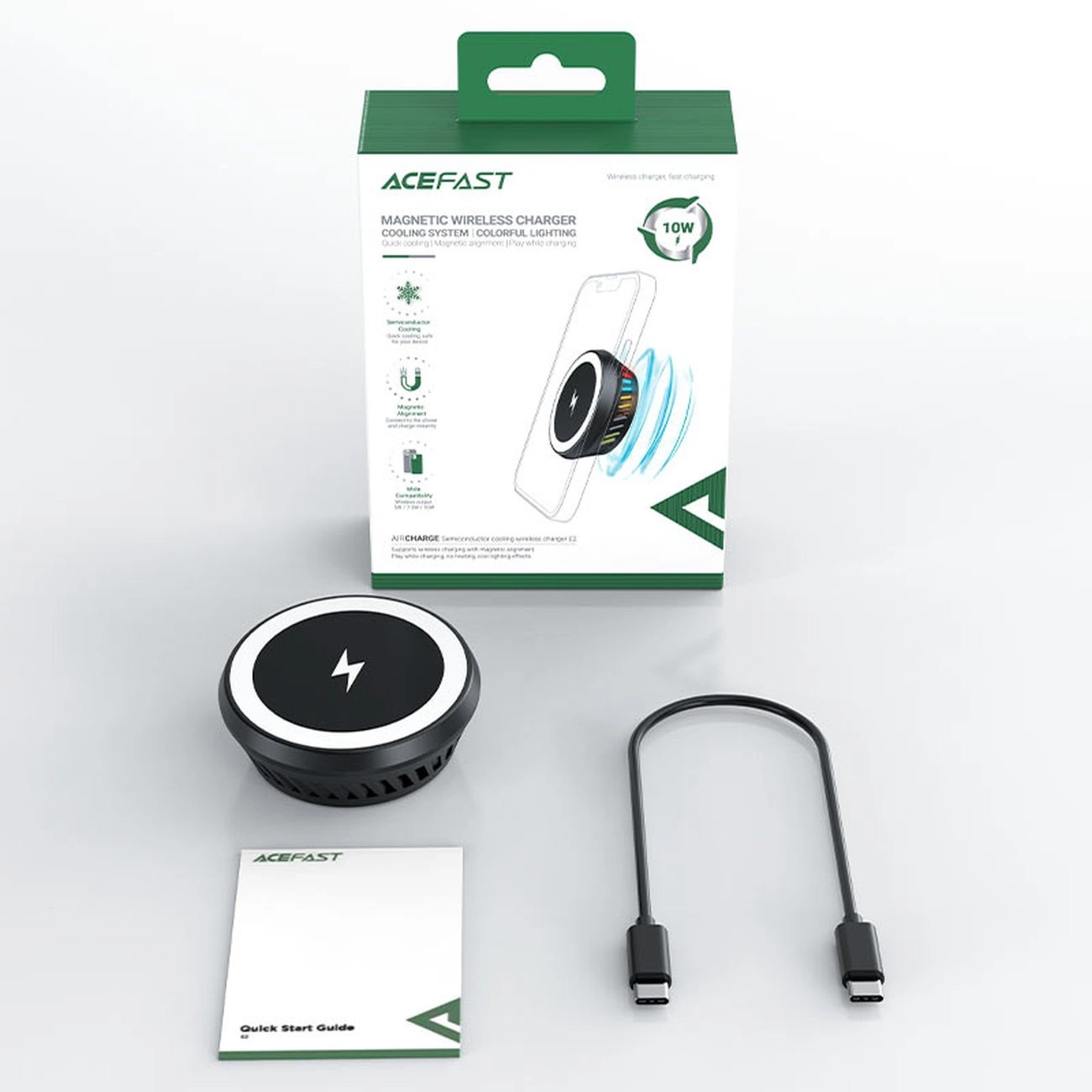 Acefast E2 is a modern induction charger designed for wireless renewal of energy . Made of high-quality materials, handy gadget , equipped with fast cooling technology and an intelligent management system that protects the equipment against overvoltage, overcharging or overheating. The cooling system is additionally supported by a series of vents located on the underside of the accessory . The charger has an LED backlight that turns on during operation.