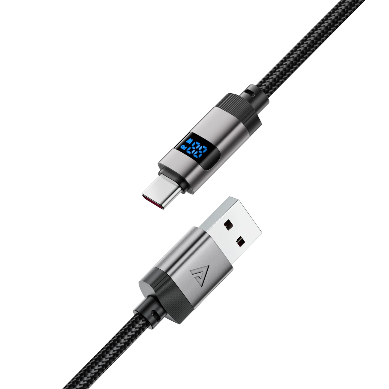 Acefast C15-04 USB-A – USB-C Cable with Display 480Mb/s 66W 1.2m – Black