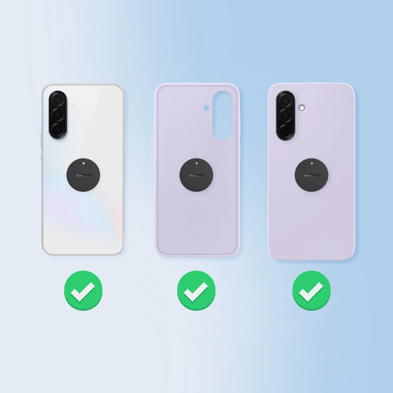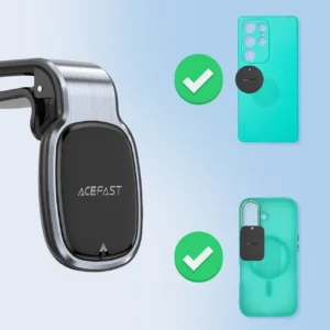 Thanks to the use of self-adhesive plates, the Acefast D16 holder does not require MagSafe – a huge advantage for users of all smartphone models. Regardless of the brand or model of your phone, you can enjoy the holder's full functionality.