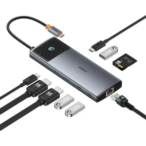 The Baseus 10-in-1 Adapter Hub also offers USB-A and USB-C ports for data transfer at a rate of 10Gbps. This speed enables rapid transfer of large files, which is especially important for professionals working with multimedia.
