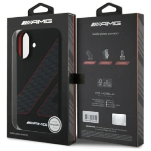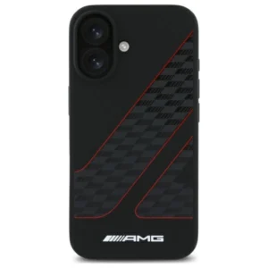 Etui z kolekcji AMG Checkered Flag Pattern MagSafe to idealny wybór dla miłośników motoryzacji. Klasyczna czerń pokrowca została wzbogacona cienkimi czerwonymi paskami i wstawkami z imitacją carbonu, wzór ten przyciąga wzrok i dodaje etui sportowego charakteru. Całość dopełnia duże, kontrastujące białe logo AMG, które podkreśla autentyczność kolekcji i luksusowy charakter produktu.