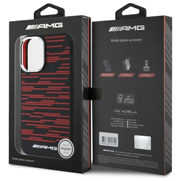 Etui z kolekcji AMG Silicone Graphics MagSafe to idealny wybór dla miłośników motoryzacji. Klasyczna czerń pokrowca została wzbogacona wyrazistym czerwonym wzorem, który przyciąga wzrok i dodaje etui sportowego charakteru. Całość dopełnia duże, kontrastujące białe logo AMG, które podkreśla autentyczność kolekcji i luksusowy charakter produktu.