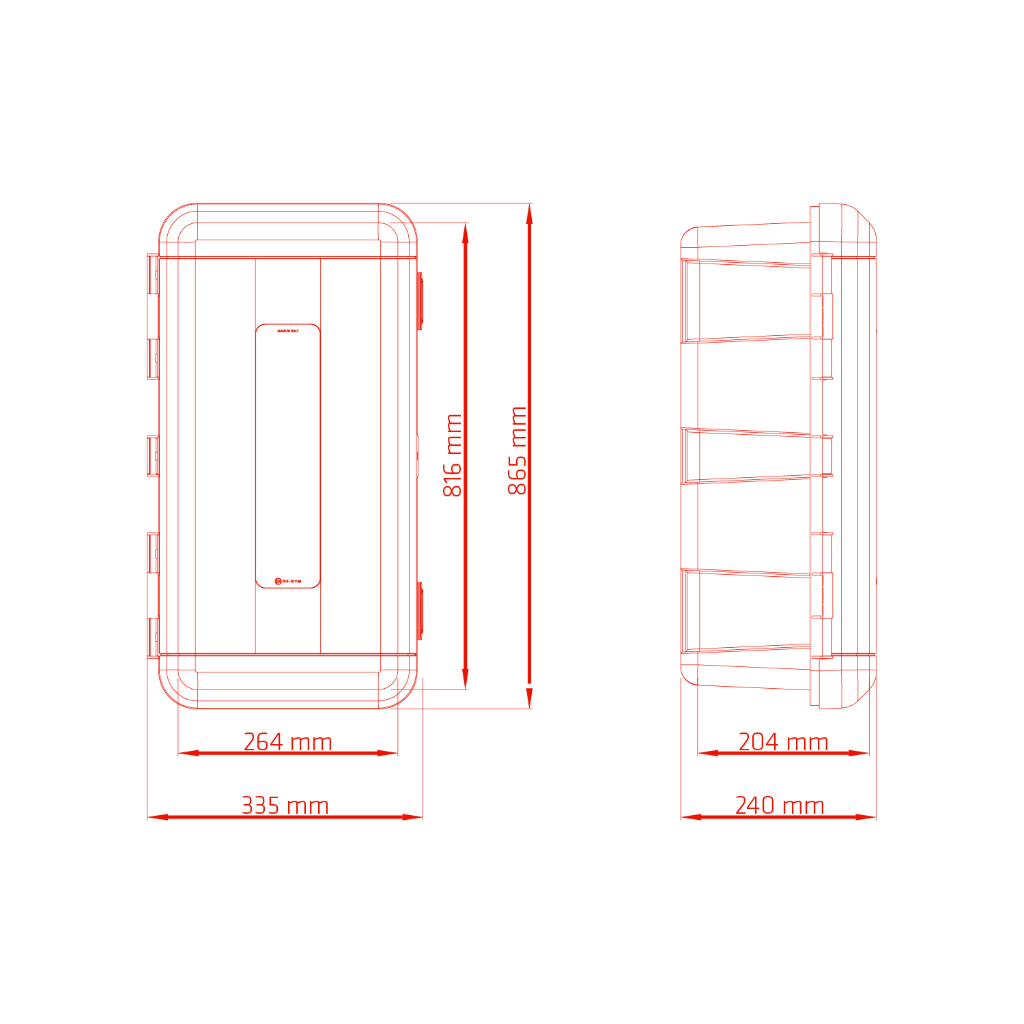 - Išoriniai matmenys: 335 x 865 x 240 mm