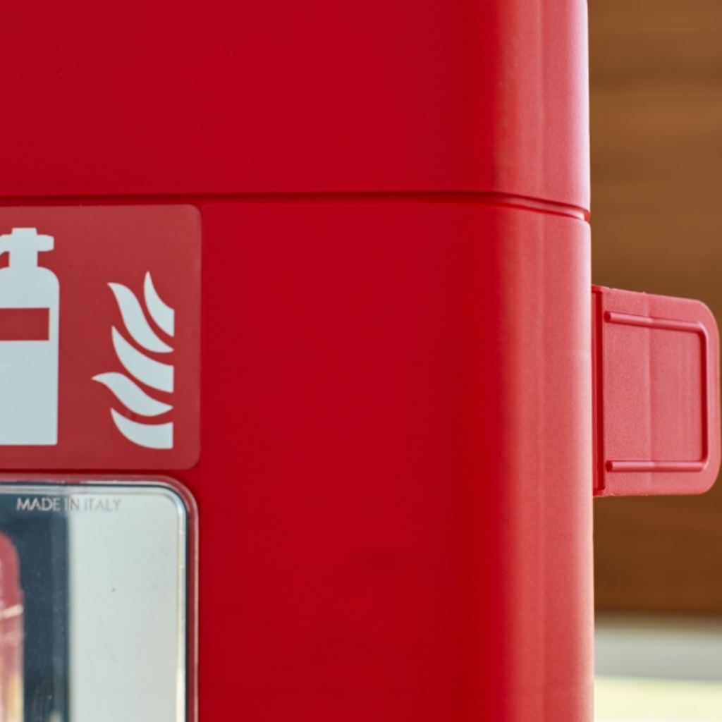 Dėžėje įmontuota sandarinimo „labirinto“ sistema, apsauganti nuo dulkių ir vandens patekimo. Skaidrus patikros langelis leidžia greitai įvertinti gesintuvo būklę neatidarant dėžės.