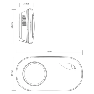 - Matmenys 132 mm (plotis) x 69 mm (aukštis) x 31 mm (gylis)