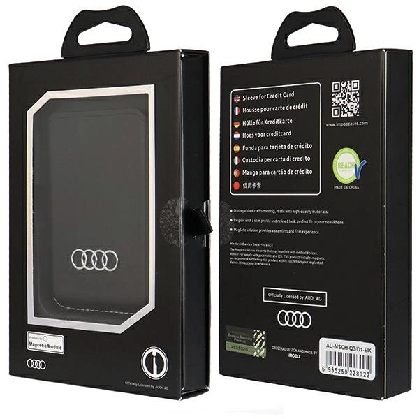 Audi Synthetic Leather magnetic wallet compatible with MagSafe - blackAudi sintetinės odos magnetinė piniginė suderinama su MagSafe – juoda