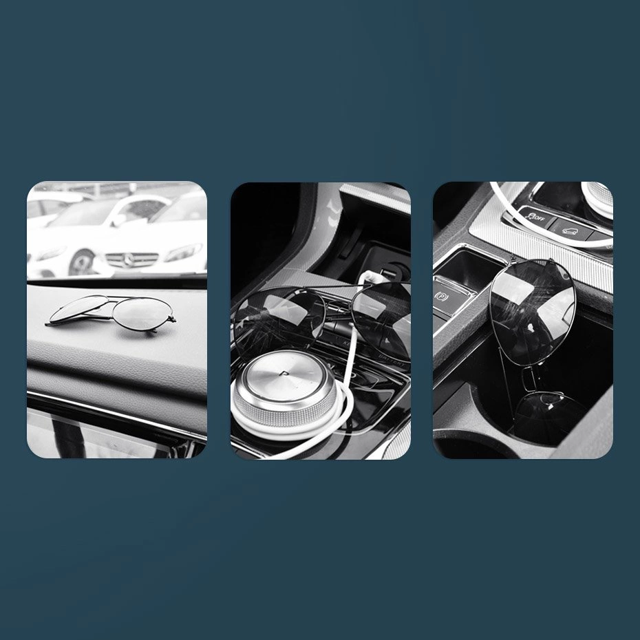 Glasses on the dashboard or loose in the cup holder? When cornering or under hard braking, they can fall off, break down and distract the driver. Placed in a clip, they will always be within your reach. All you have to do is reach for them without taking your eyes off the street. You can take them off with one hand!