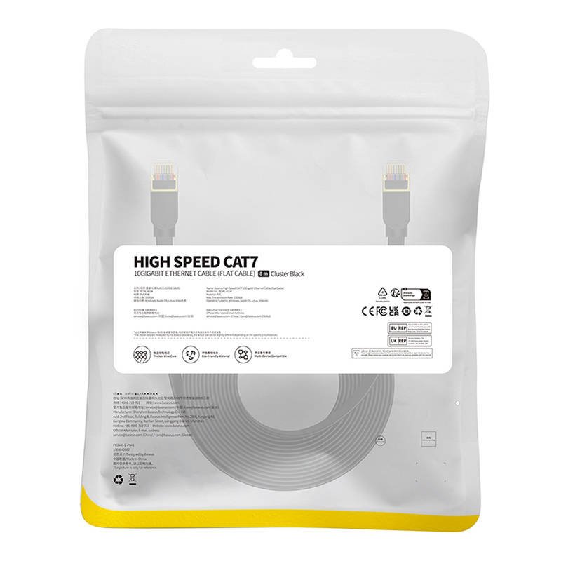 Baseus Ethernet RJ45 flat network cable, Gigabit, Cat.7, 8 m (black)