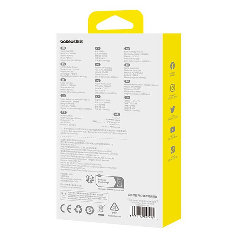 The 60W Baseus Free2Pull USB-C cable is a product with which you work more efficiently, enjoy greater durability and keep your workspace elegantly organized. It features an extremely durable, foldable design, supports fast charging and supports 480 Mbps data transfer. Ideal for those who value quality and practicality in their daily lives.