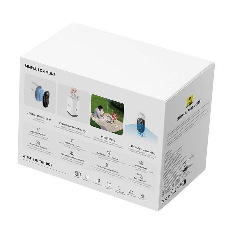 The Baseus N1 Plus 2K camera kit guarantees up to 270 days of operation on a single charge thanks to its powerful 10500 mAh battery. You only need to charge the devices once a year to enjoy constant protection without having to frequently monitor the battery charge status. This solution is ideal for those who value convenience and reliability, and helps save energy.