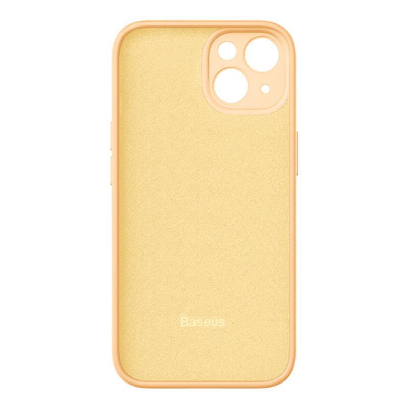Baseus Liquid Silica Gel case for iPhone 14 Plus (yellow) + tempered glass +cleaning kit