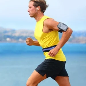 A running belt with a double pouch is a practical and mandatory accessory for every person practicing sports.