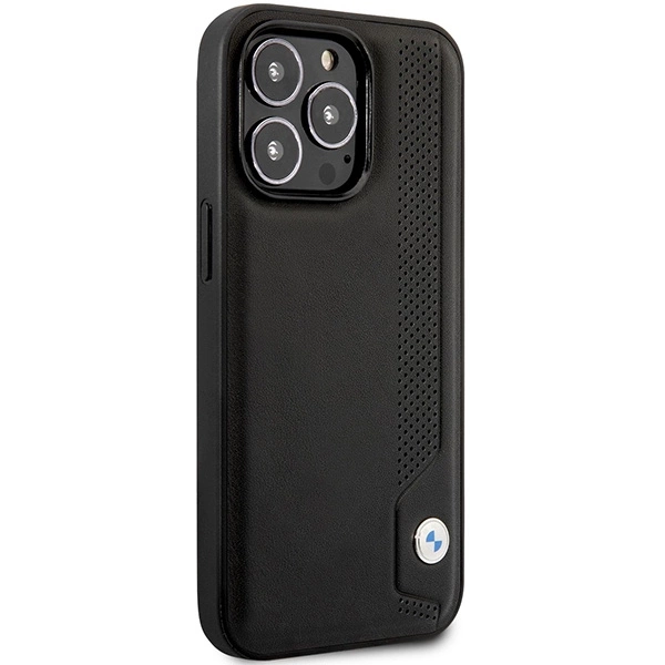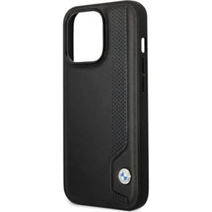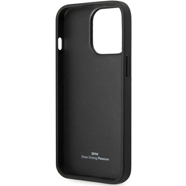 BMW BMHCP14X22RBDK dėklas iPhone 14 Pro Max 6.7″ – juodas/juodas kietas, Leather Blue Dots