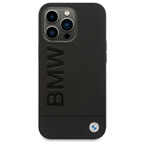 Case BMW BMHCP14XSLLBK iPhone 14 Pro Max 6.7 "black / black Leather StampBMW BMHCP14XSLLBK dėklas iPhone 14 Pro Max 6,7″ juodas odinis su įspaudu