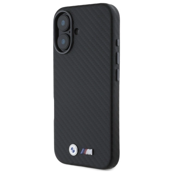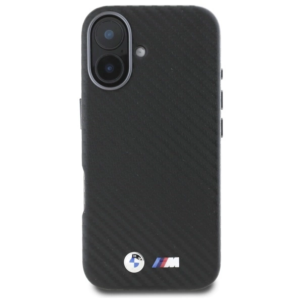 BMW Carbon Wrapped Metal iPhone 16 Case - BlackBMW Carbon Wrapped Metal dėklas iPhone 16 – juodas