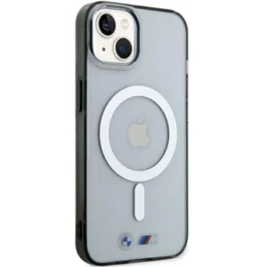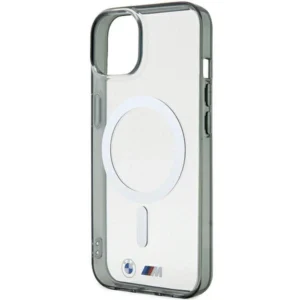 Pradinis | Parduotuvė | Telefonų priedai | Dėklai | Išmaniųjų telefonų apsauginiai dėklai | BMW sidabrinis žiedas MagSafe dėklas iPhone 15 – permatomas