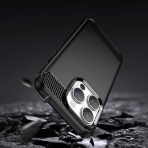 Carbon dėklas iPhone 14 Pro, lankstus, su gelio nugarėle, juodas