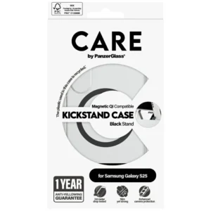 CARE by PanzerGlass Feature Black Kickstand & QI Case for Samsung Galaxy S25 - TransparentCARE by PanzerGlass Feature Black Kickstand & QI dėklas Samsung Galaxy S25 skaidrus