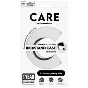 CARE by PanzerGlass Feature Black Kickstand & QI Case for Samsung Galaxy S25+ - TransparentCARE by PanzerGlass Feature Black Kickstand & QI dėklas Samsung Galaxy S25+ skaidrus