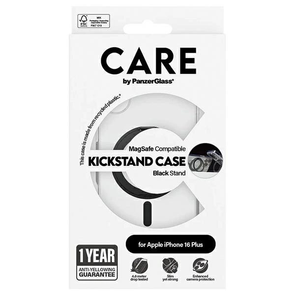 Etui PanzerGlass™ Kickstand Case MagSafe to idealne połączenie wytrzymałości, stylu i praktyczności. Wykonane w 100% z materiałów pochodzących z recyklingu, zapewnia niezawodną ochronę smartfona przed upadkami – nawet z wysokości 4,8 metra – oraz skutecznie zabezpiecza krawędzie i aparat. Zastosowany materiał zapobiega żółknięciu, a smukła konstrukcja gwarantuje łatwy dostęp do wszystkich przycisków, nie pogrubiając nadmiernie urządzenia.