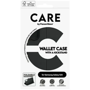 CARE by PanzerGlass piniginės dėklas su stovu Samsung Galaxy S25 – juodasLikutis centriniame sandėlyje: 19