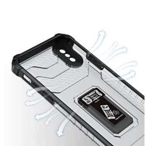 • Built-in Ring holder – an extremely practical ring holder is built into the back of the cover, which can be put on your finger to hold the phone more securely in your hand. It also allows you to attach your phone to a magnetic car holder