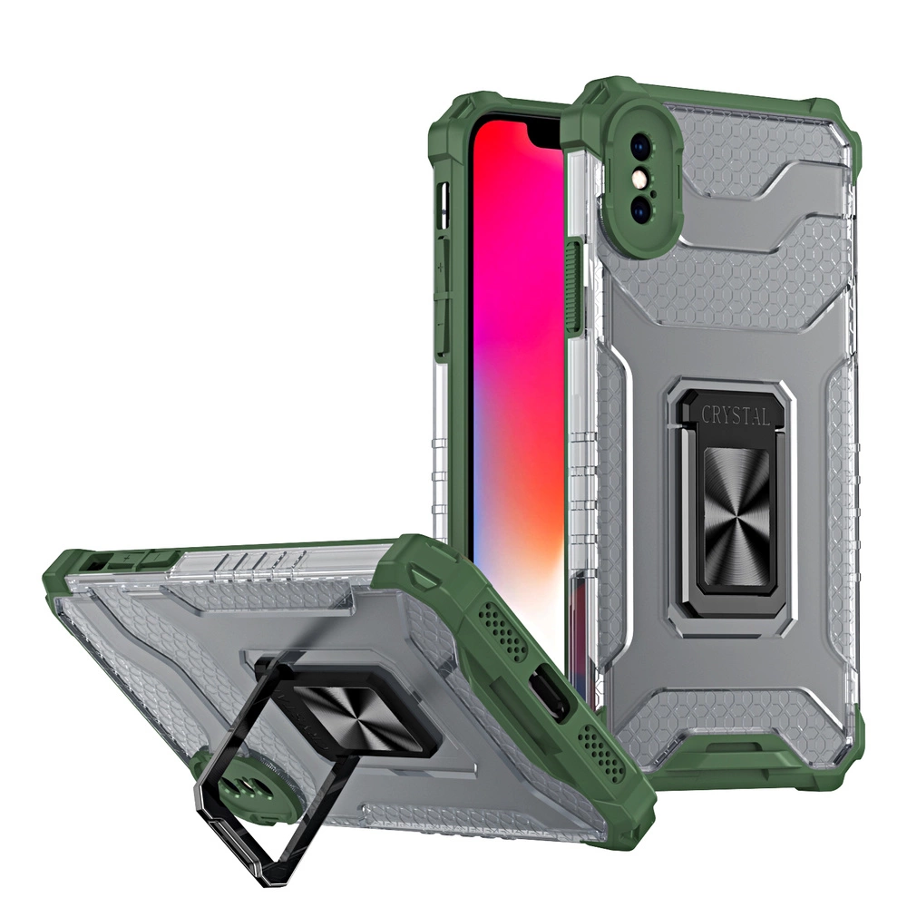Crystal Ring dėklas su stovu, tvirtas, iPhone XS Max, žalias