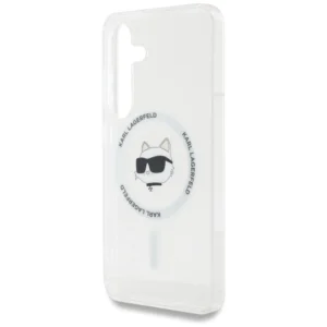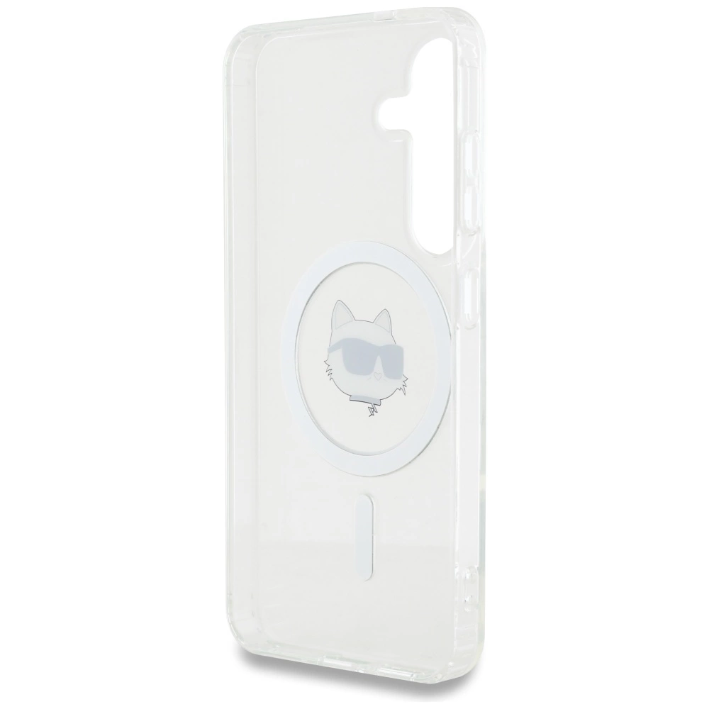 Dėklas Karl Lagerfeld Button Choupette Head Printed Logo MagSafe Samsung Galaxy S25 baltas