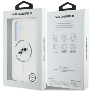 Seria Button Karl & Choupette Heads Printed Logo MagSafe to idealne rozwiązanie dla tych, którzy pragną harmonii pomiędzy funkcjonalnością a wyjątkowym stylem dla swojego smartfona. Oferując solidną ochronę, ta wyjątkowa kolekcja nie tylko zapewnia bezpieczeństwo urządzenia, ale także dodaje mu niepowtarzalnego charakteru, przyciągając uwagę swoim unikalnym designem.
