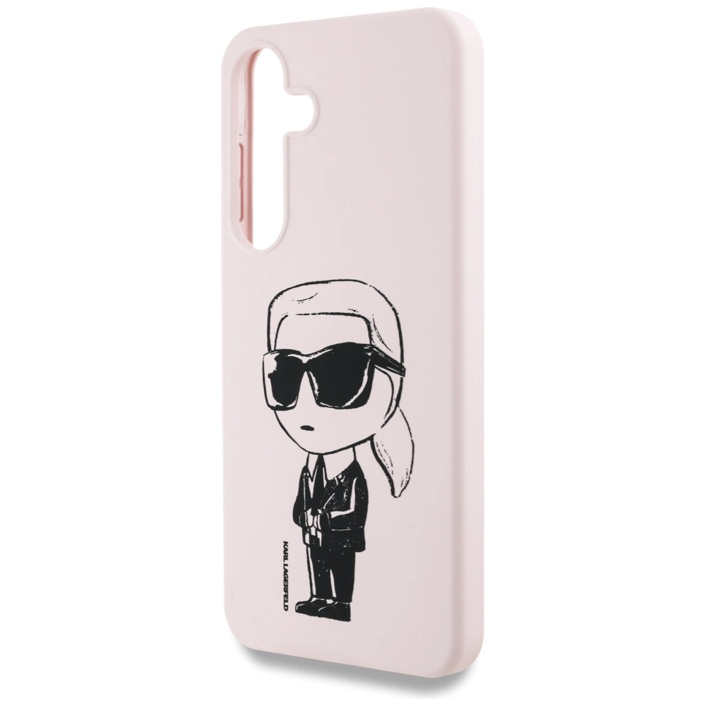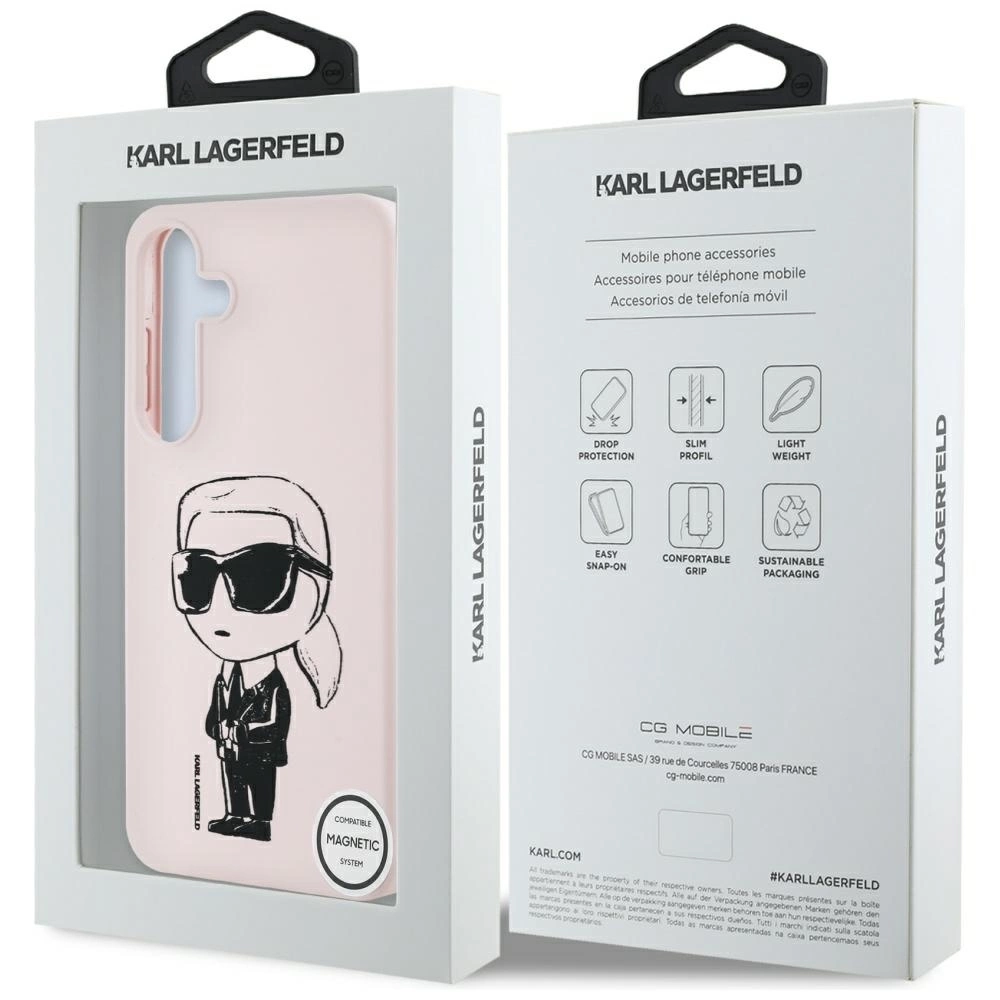 Dėklas Karl Lagerfeld Silicone Graffiti Ikonik Printed Logo MagSafe Samsung Galaxy S25 rožinis