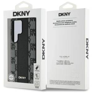 Każde etui zostało ozdobione unikalnym wzorem inicjałów marki DKNY, które układają się w efektowny geometryczny motyw kratki. Ten charakterystyczny wzór przyciąga uwagę swoją niepowtarzalnością i wyjątkowym designem. Dodatkową ozdobą jest szeroki, pionowo ułożony pas utrzymany w kolorystyce pokrowca, co tworzy spójną i elegancką całość. Projekt zwieńcza niewielkie logo marki DKNY, które podkreśla prestiż i autentyczność tej kolekcji.