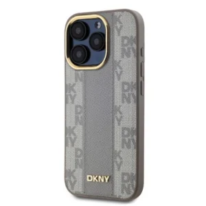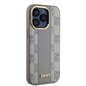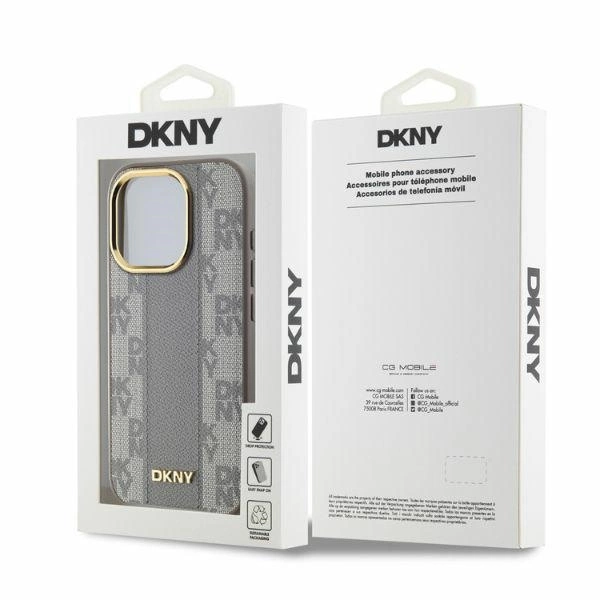 DKNY Leather Checkered Mono Pattern MagSafe iPhone 15 Pro Case - BeigeDKNY odinis languotas mono raštas MagSafe iPhone 15 Pro dėklas – smėlio
