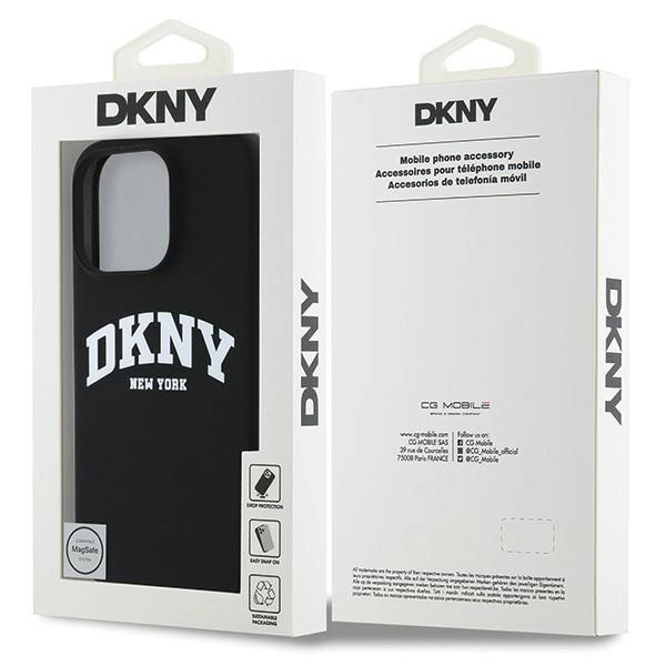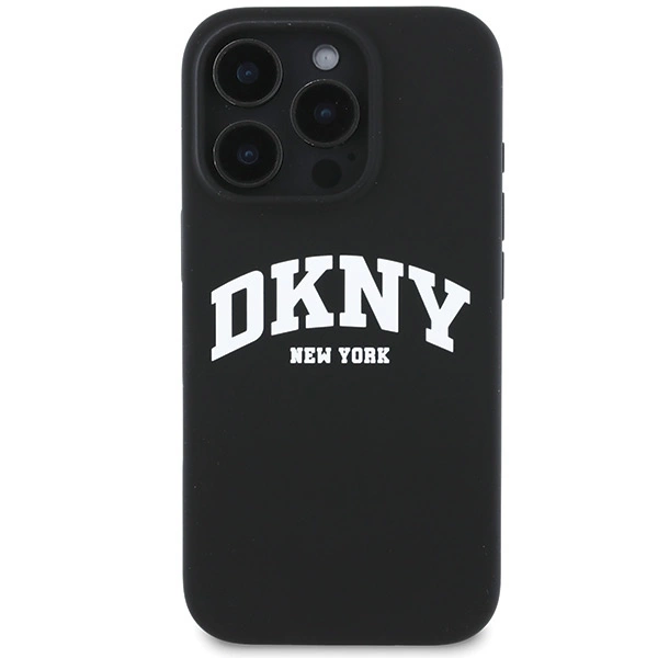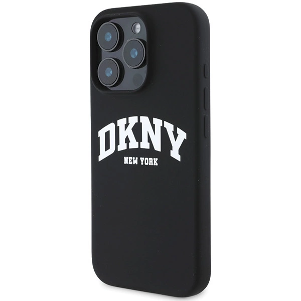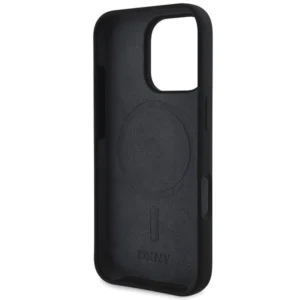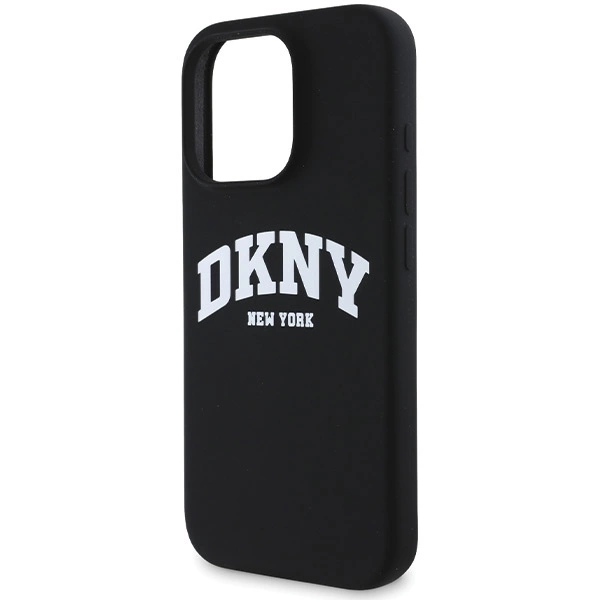 DKNY silikoninis baltas spausdintas logotipo MagSafe iPhone 16 Pro dėklas – juodas