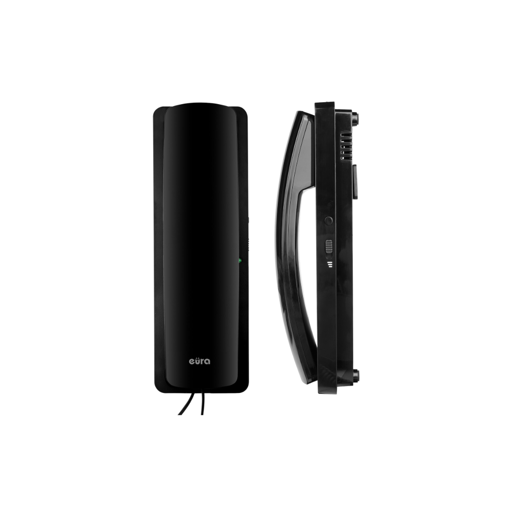 Domofonas Eura ADP-25A3 Black susideda iš unifono, išorinės kasetės ir 12 V DC maitinimo šaltinio.