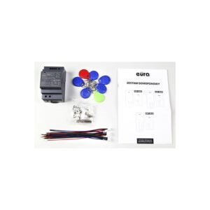 Domofonas Eura ADP-63A3 White turi tris baltos spalvos unifonus, išorinę kasetę su įmontuotu bevielio ryšio raktų skaitytuvu ir DIN bėgelyje įmontuotą nuolatinės srovės 12 V 4,5 A maitinimo šaltinį.