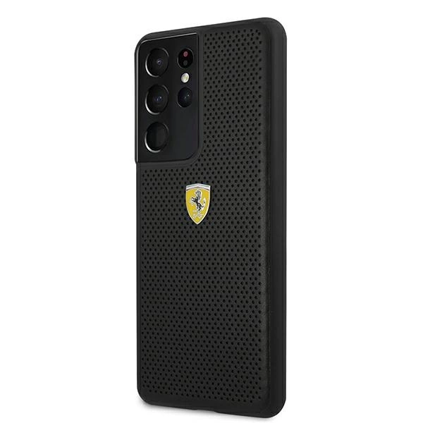 Exclusive Ferrari case from the On Track – Perforated collection signed by one of the most popular automotive concerns in the world. It is made of a combination of polycarbonate (back) and ecological leather, and the edges are made of flexible polyurethane, which ensures easy assembly. The Perforated series is characterized by being made of the best quality perforated leather placed on a metallic shell of hard polycarbonate, signed with the Ferrari logo.