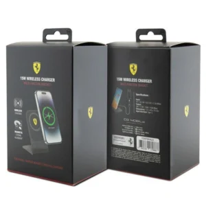 The Ferrari induction charger impresses not only with its appearance, but above all with its practicality. The device is equipped with the latest inductive charging technology with a power of up to 15W, which means that your phone will be charged quickly and wirelessly. Compatibility with MagSafe technology will certainly be appreciated by users of the latest iPhone models. Thanks to perfectly matched magnets, the device adheres tightly to the phone. Strong magnets ensure a solid attachment of the phone to the charger base, adhere perfectly to the magnetic ring built into the phone and ensure a fast flow of energy.