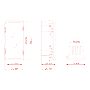 - Išoriniai matmenys: 310 x 671 x 247 mm