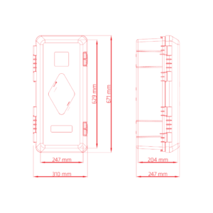 - Išoriniai matmenys: 310 x 671 x 247 mm