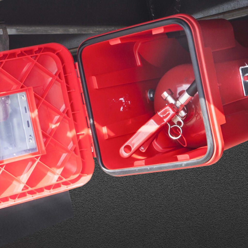 Gesintuvo dėžė DAKEN Sliden 9-12kg (raudona, su langeliu) – profesionalus ir ilgaamžis sprendimas, sukurtas transportui, kai reikalinga patikima gesintuvo apsauga, greitas pasiekiamumas ir atsparumas sudėtingoms eksploatavimo sąlygoms.