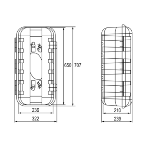 - Vidiniai matmenys: 236 x 650 x 210 mm