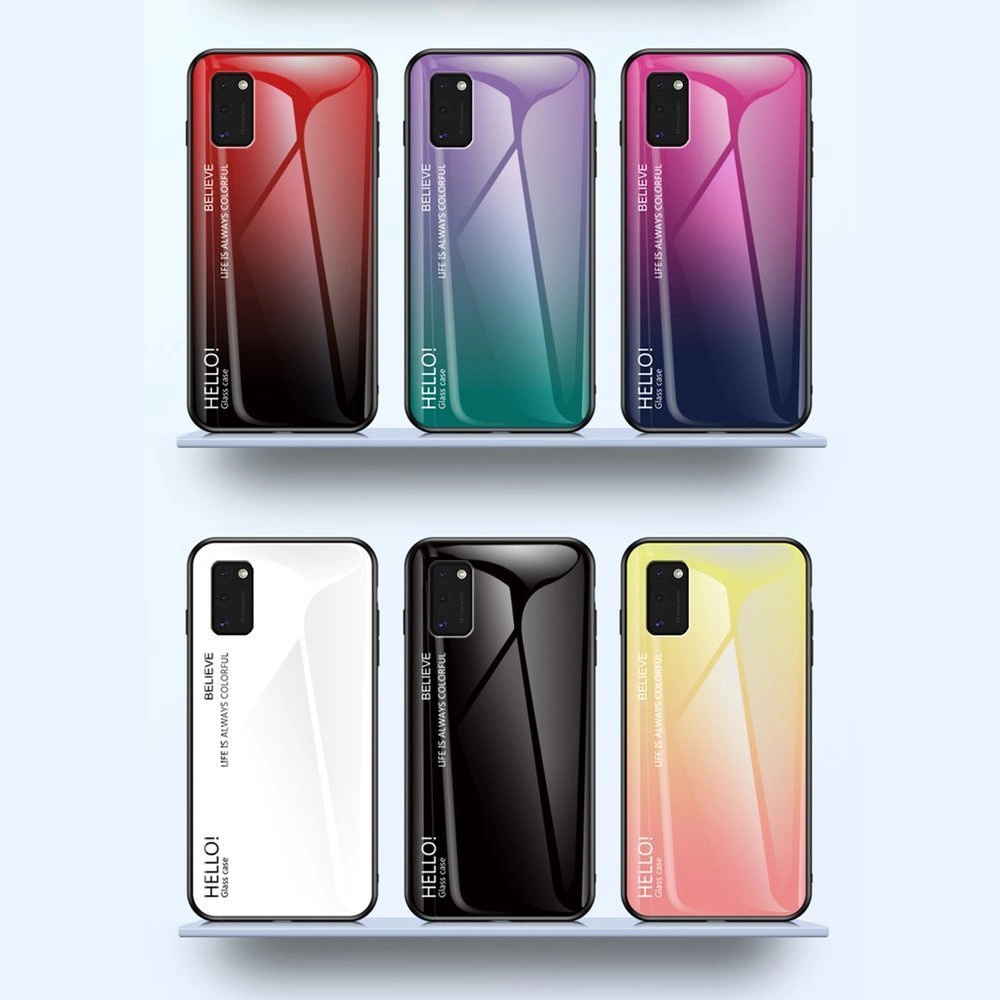 Gradient Glass tvirtas dėklas su grūdinto stiklo nugarėle Samsung Galaxy A41 – juodai raudonas