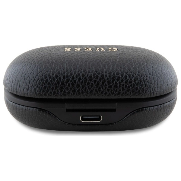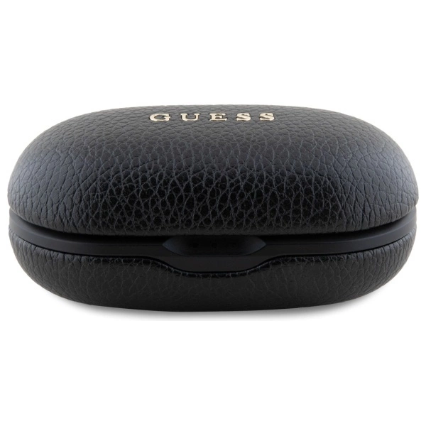 The case is covered with high-quality eco-leather . The black color of the headphones gives them an elegant, minimalist look and the golden Guess logo adds a luxurious accent.