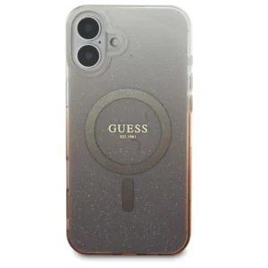 To stylowe etui wyróżnia się subtelnym efektem gradientu i brokatową powierzchnią, która nadaje mu niepowtarzalny wygląd i elegancję. Pierścień MagSafe został estetycznie zintegrowany z projektem, dzięki czemu jest nie tylko funkcjonalny, ale także idealnie współgra z całością. Natomiast w centralnej części etui znajduje się delikatne złote logo Guess, które dodaje mu klasycznego uroku.
