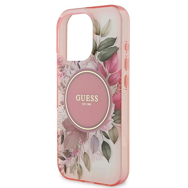 Ta elegancka kolekcja zachwyci nawet najbardziej wybredne i wyrafinowane gusta. Wierzchnia warstwa pokrowca urzeka delikatnym kwiatowym wzorem w odcieniach, które harmonijnie współgrają z kolorem etui, tworząc spójną całość. W centrum znajduje się złoty pierścień MagSafe, idealnie podkreślający logo GUESS umieszczone na tle w odcieniu różu. Ten wyjątkowy design nie tylko dodaje elegancji, ale również zapewnia funkcjonalność i ochronę, czyniąc z pokrowca stylowy dodatek dla wymagających użytkowników.